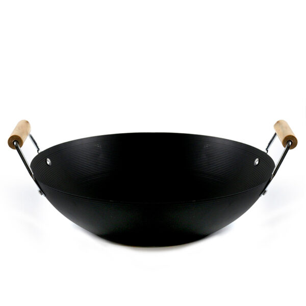Heavy Duty Carbon Steel Wok Pan with Stainless Steel and Wooden Handles Non Stick Round Casserole for Electric Induction and Gas Stoves