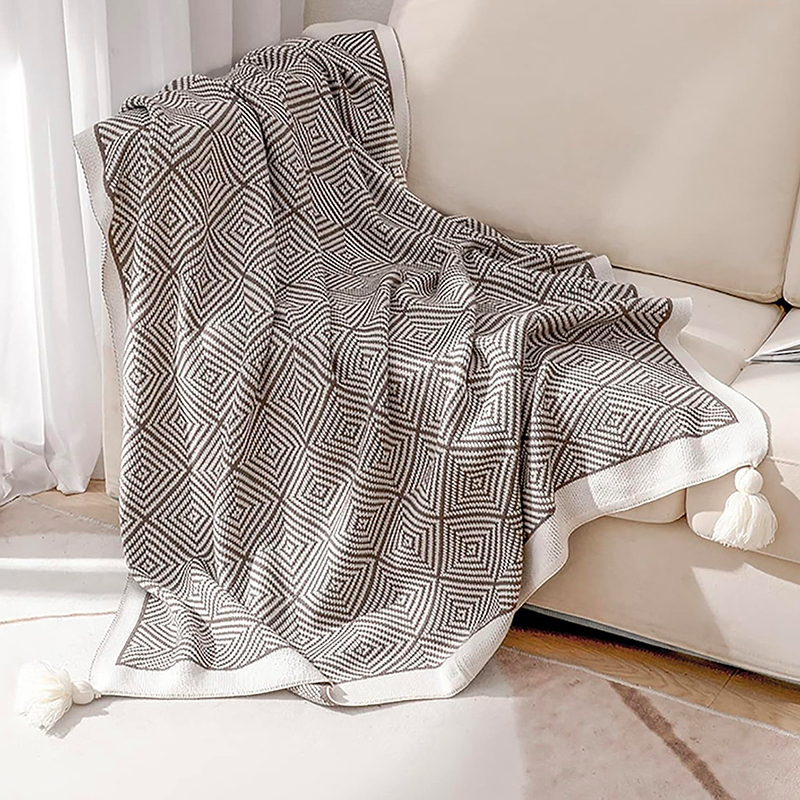 130 CM X 150 CM Knitted Throw Blanket with Tassels Diamond Pattern Soft Warm Breathable for Bedspread Couch and Sofa 1 Piece Brown