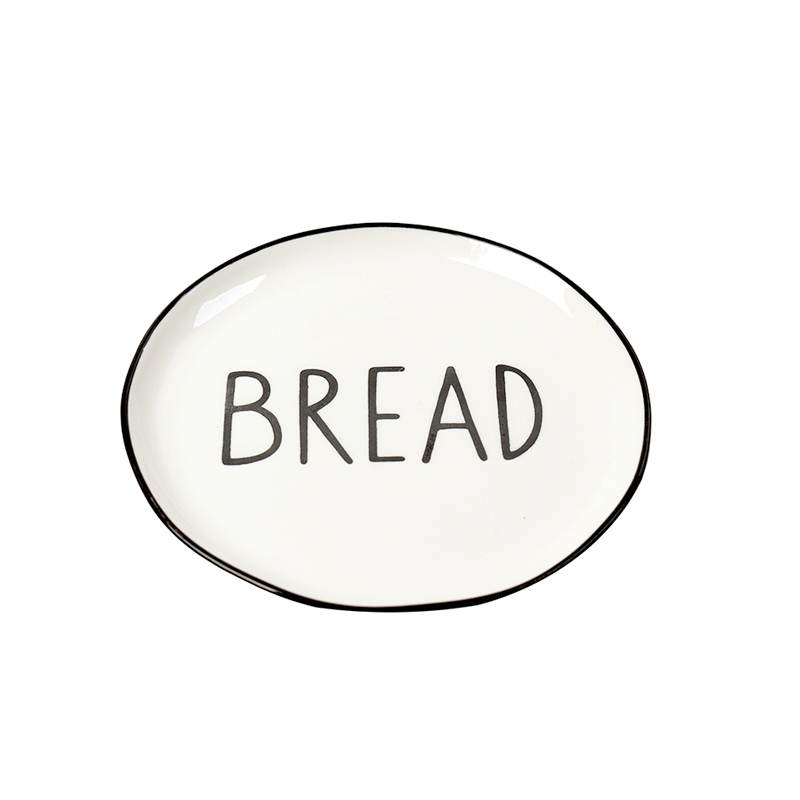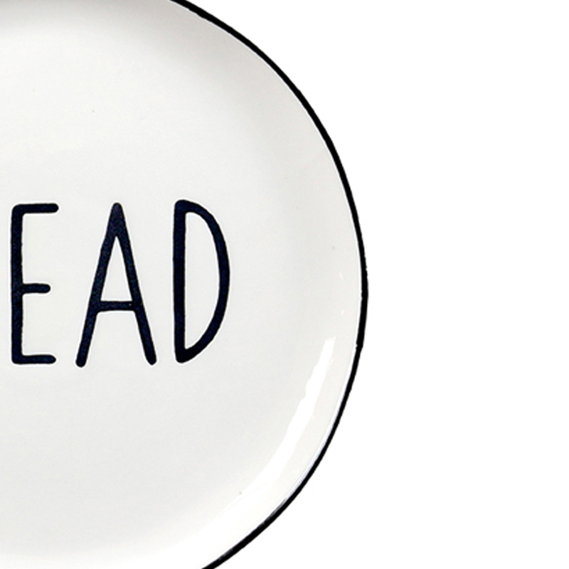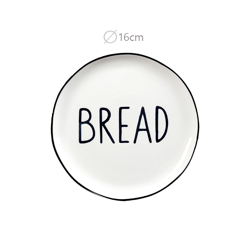 16 CM Porcelain Side Plate with Text Design Bread Glazed Black Rim Dinnerware Plates Tableware Kitchen Dish Microwave and Dishwasher Safe 1 Piece