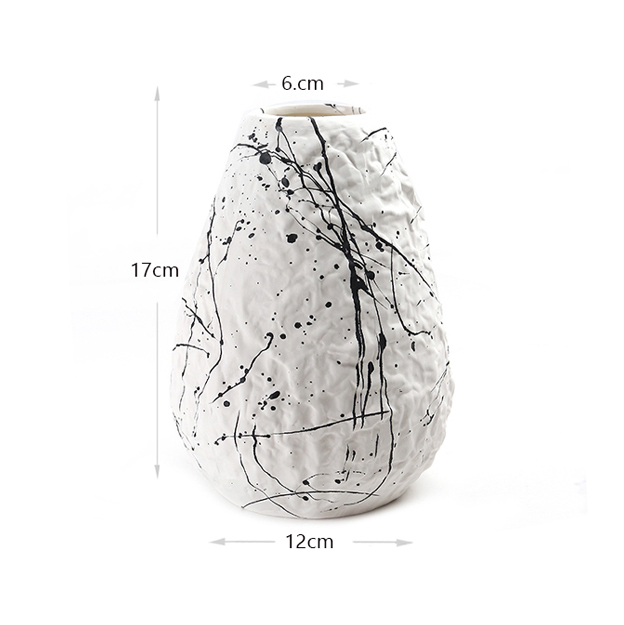 17 CM Modern Creative Handmade Ceramic Flower Vase Craft Ink Painting Pattern Vases Centerpiece Decorative Ornaments for Home Decor 1 Piece