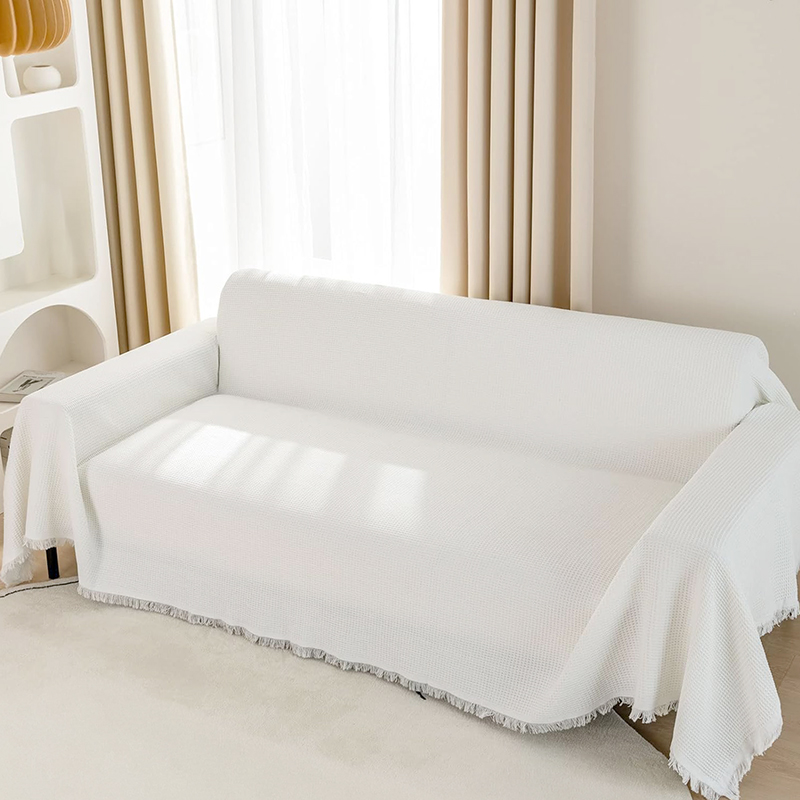 - Material Composition: Made of Waffle Cotton Thread, Thick, Soft, Comfortable and Durable. The breathable fabric drapes beautifully over sofas, protecting furniture while enhancing comfort. Finished with subtle fringed edges.