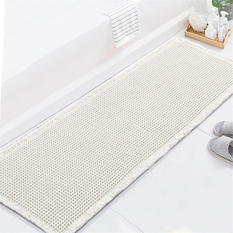 190 CM X 65 CM Cotton Waffle Dry Bathroom Rug Non Slip Kitchen Mat with Tassels Super Absorbent Ultra Soft Boho Decor Floor Mats Machine Washable