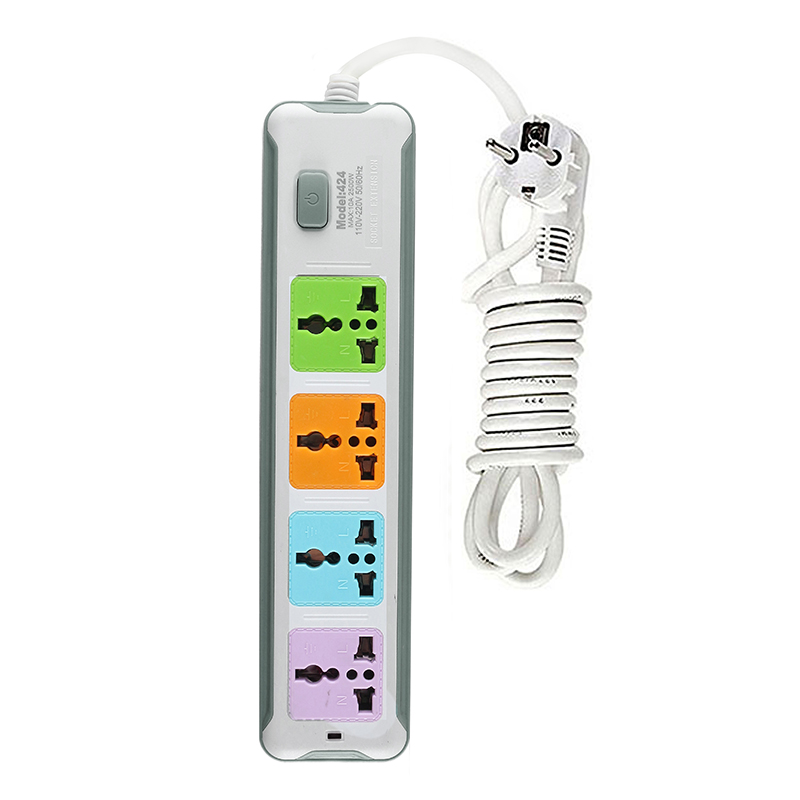 2.85 M Colorful Power Strip Extension Wire with 4 Sockets Safety Protection Socket Surge Protector Extension Boards 1 Way Extension Socket