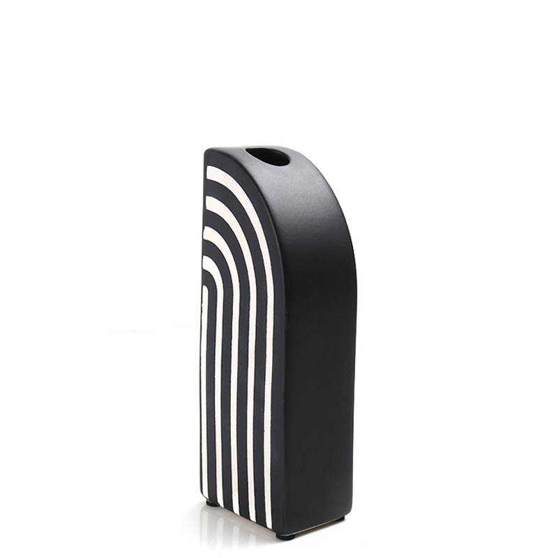 20 CM Striped Ceramic Half Arch Shape Flower Vase Modern and Abstract Vases Centerpiece Decorative Ornaments for Home Decor 1 Piece Black and White