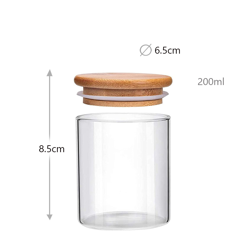 200 ML Borosilicate Glass Food Storage Jar with Bamboo Lid and Silicone Ring Food Storage Jars for Storing Spices Condiments and Herbs 1 Piece