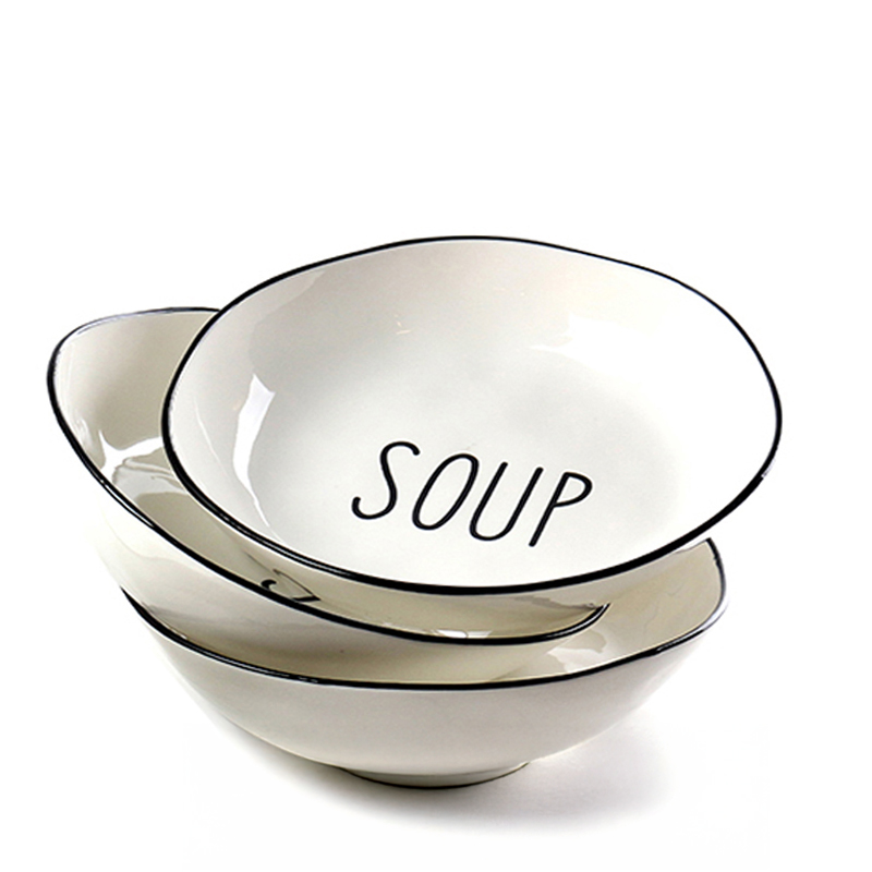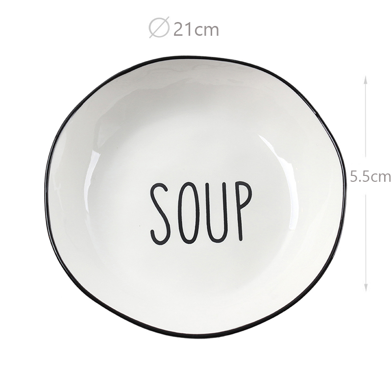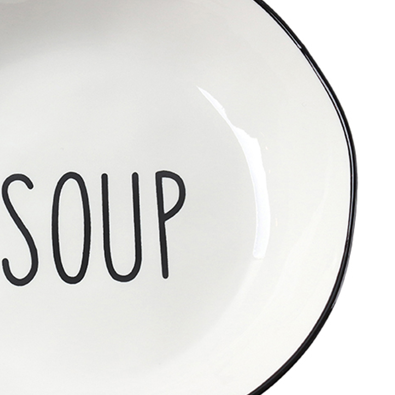21 CM Porcelain Plate with Text Design Soup Glazed Black Rim Dinnerware Plates Tableware Kitchen Dish Microwave and Dishwasher Safe 1 Piece