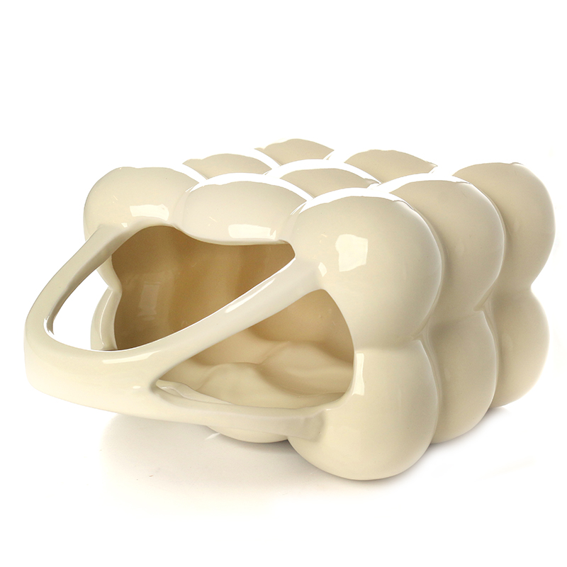24 CM Modern Creative Ceramic Flower Vase with Handle Glazed Finishing Bubble Design Vases Centerpiece Decorative Ornaments for Home Decor 1 Piece