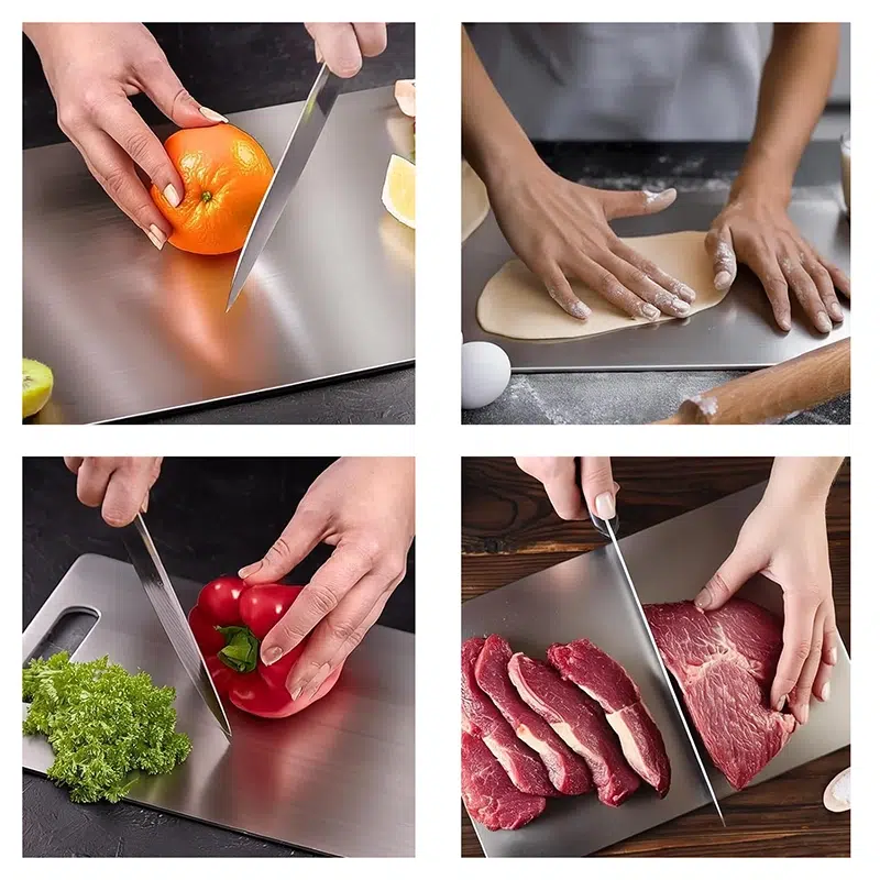25 CM X 36 CM Stainless Steel Chopping Board Heavy-Duty Metal Cutting Board Anti-Rust Non-Slip Reversible Board for Dough Preparation Silver 1 Piece