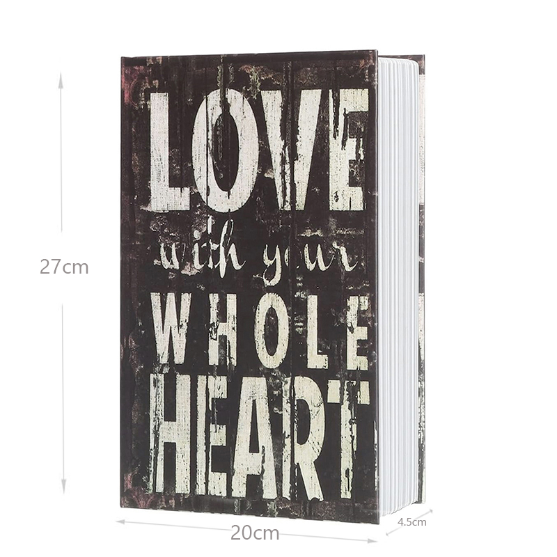 27 CM Love Book Safe Box with Key Lock Metal Inner Container Faux Book Hidden Safe Secret Diversion Storage Box for Money Jewelry and Documents