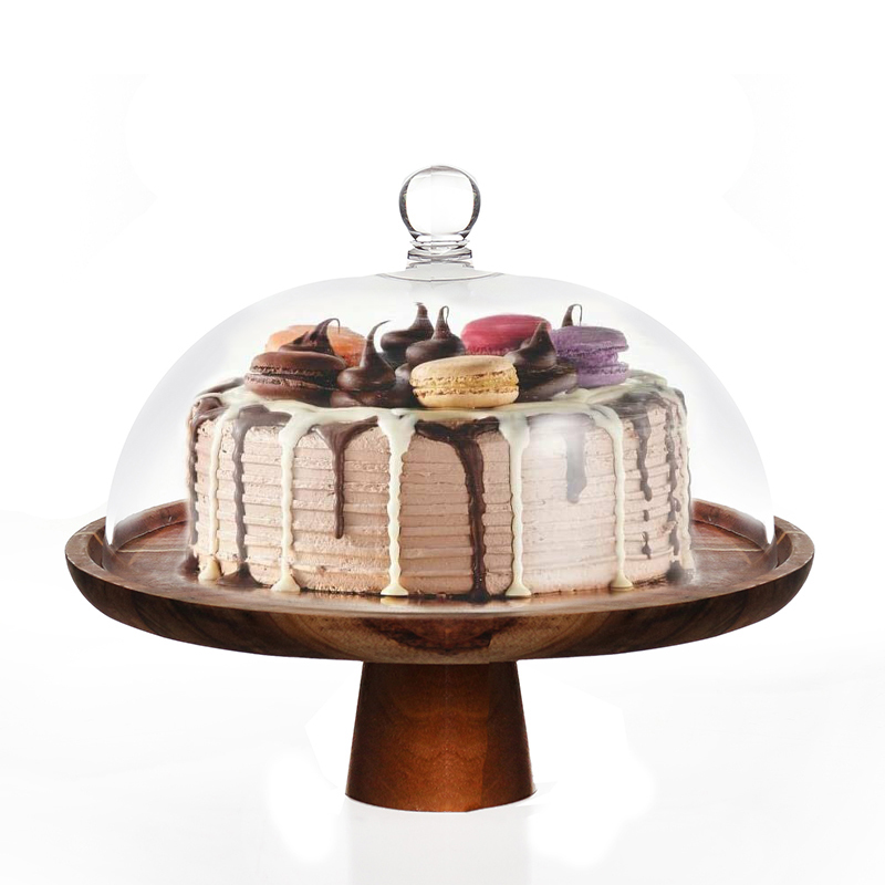 - Premium Material- Crafted from high-quality, durable acacia wood, paired with a crystal-clear acrylic dome lid. The wooden base provides sturdy support, while the acrylic dome not only keeps your treats fresh but also serves as a protective barrier against dust.