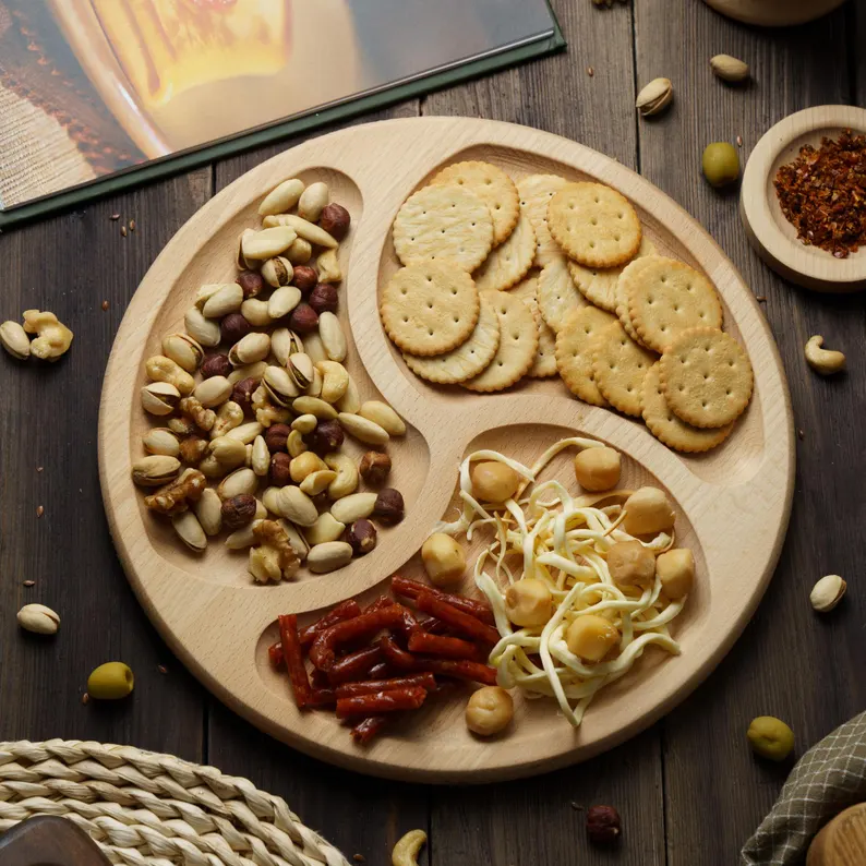 - Multi Use- 3 sectional platter is great for use for cut up veggies, dried fruits, nuts, Candies, chips, biscuits, etc.