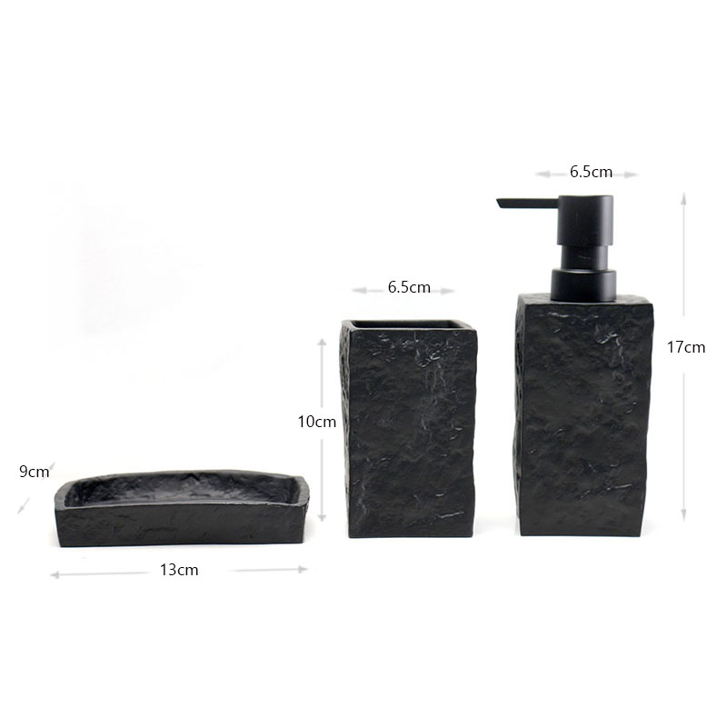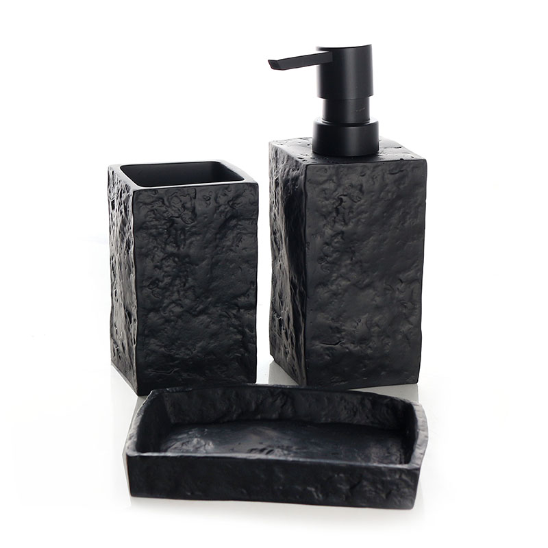 3 Pieces Resin Decorative Bathroom Accessories Set Bath Accessory Kit with Toothbrush Holder Liquid Soap Dispenser and Soap Dish Tray Black