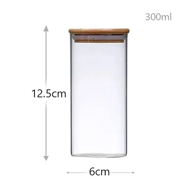 300 ML Borosilicate Glass Food Storage Container with Bamboo Wooden Lid and Silicone Ring for Sugar Coffee Nuts and Cookies Dishwasher Safe 1 Piece