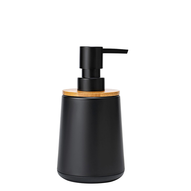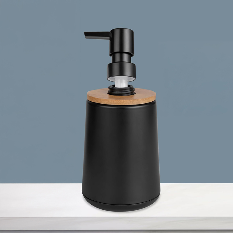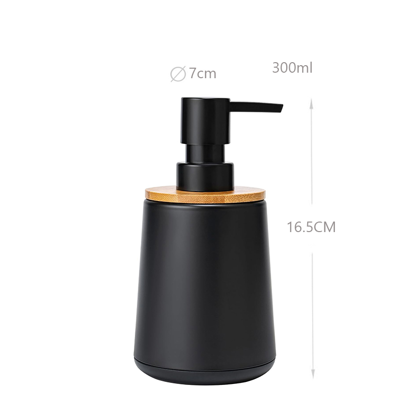 300 ML Stainless Steel Hand Soap Dispenser with Plastic Bamboo Pump Refillable Soap Dispensers Hand Soap Bottles for Bathroom and Kitchen Black