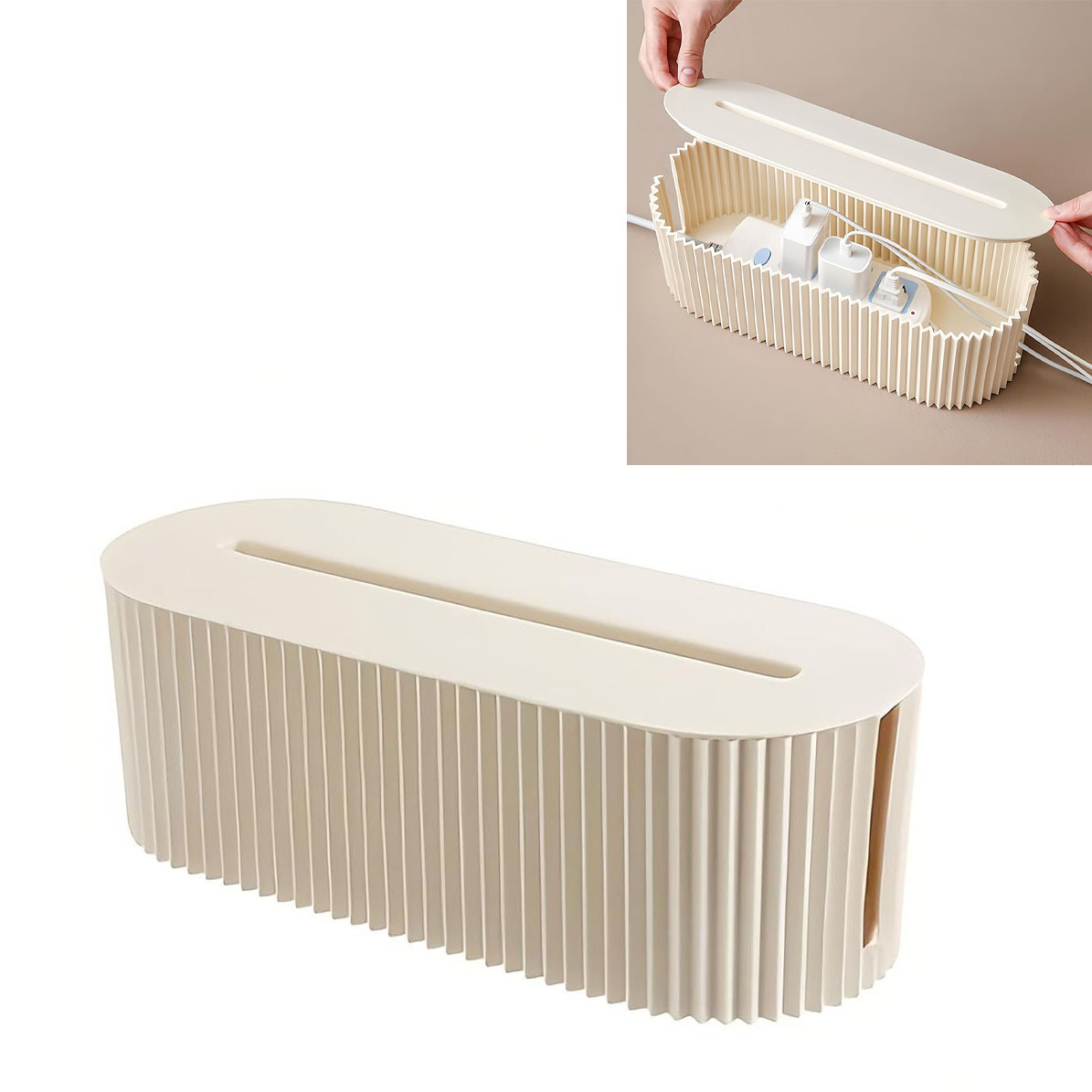33 CM Cable Organizer Box with Lid Cord Storage Box Under Desk Cable Hider Wire Management Solution for Home Office 1 Piece Beige