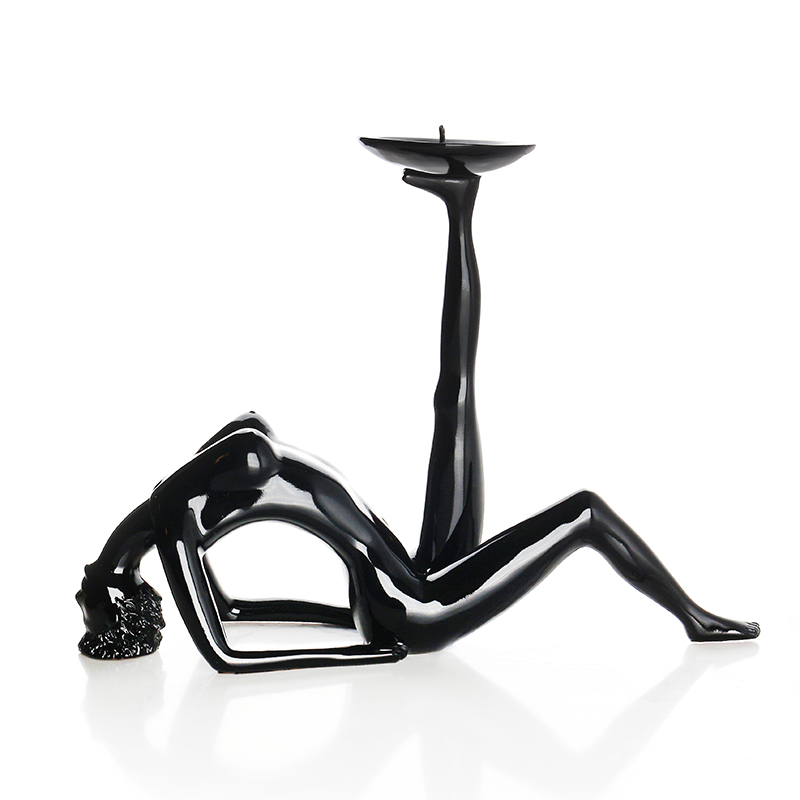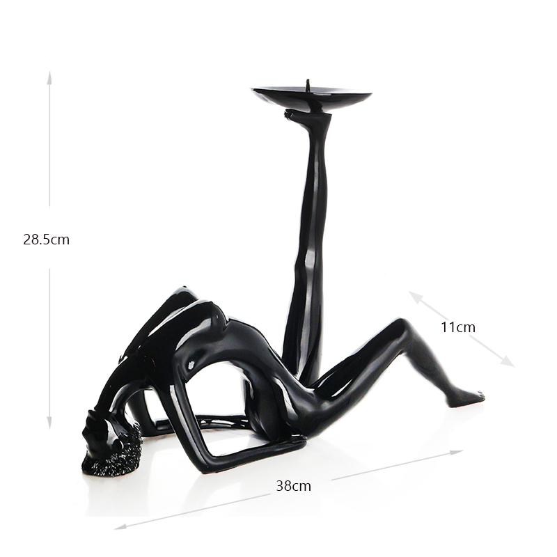 38 CM Handmade Resin Acrobat Girl Sculpture Figurines Beauty Candlestick Figurine Gymnast Display Art Statue Decorative Ornaments for Home Decor Black