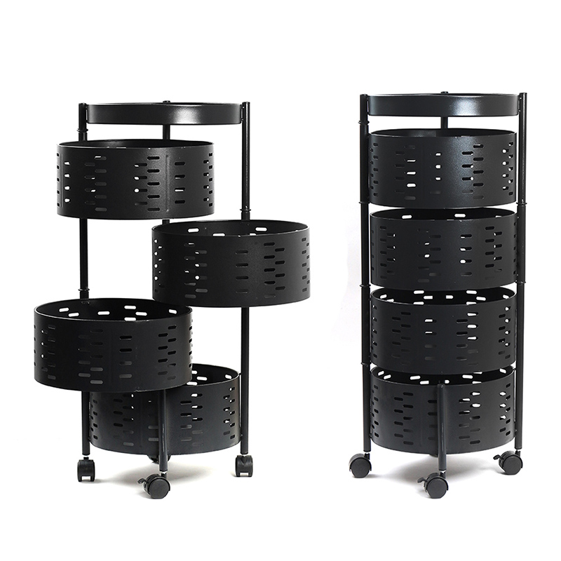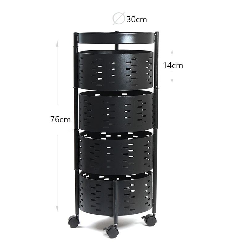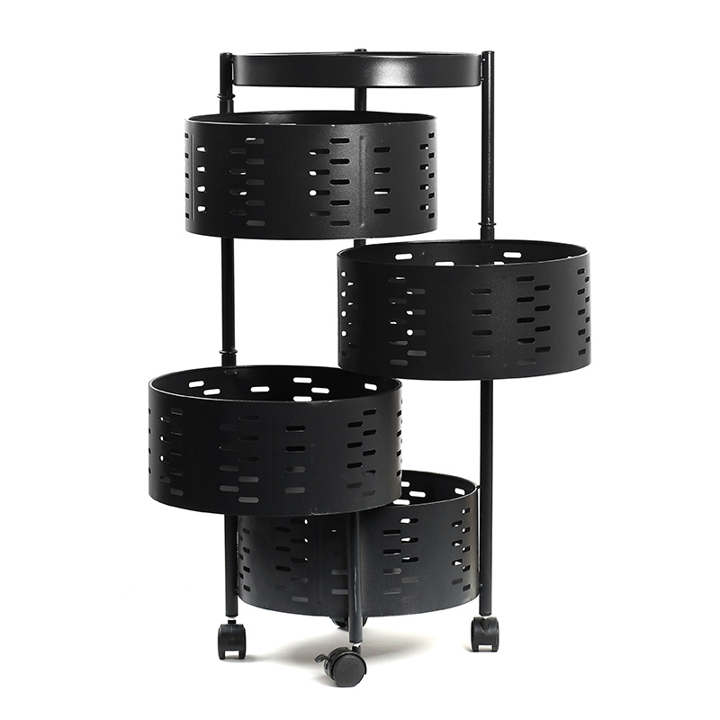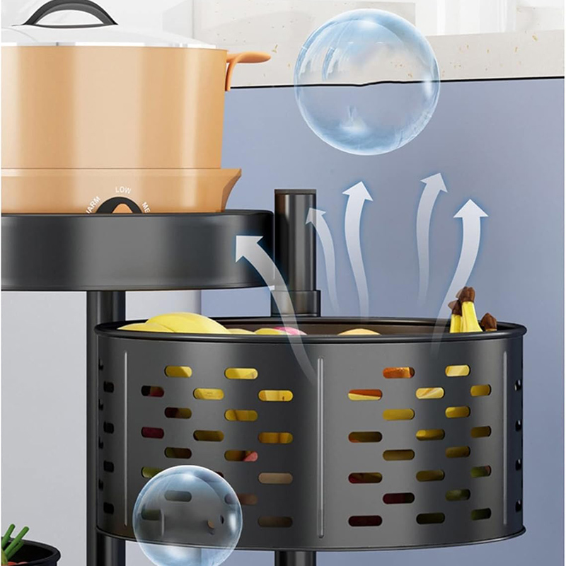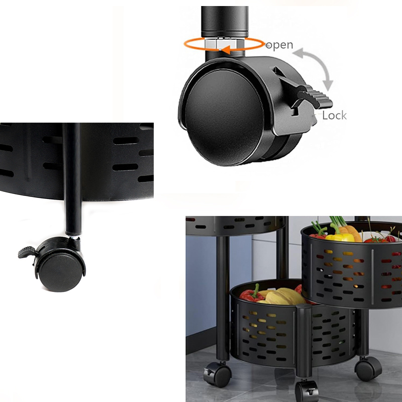 4 Tier Metal Round Kitchen Storage Baskets with Wheels with Brake Fruit and Vegetable Basket Rotating Organizer Rack for Kitchen and Bathroom Black