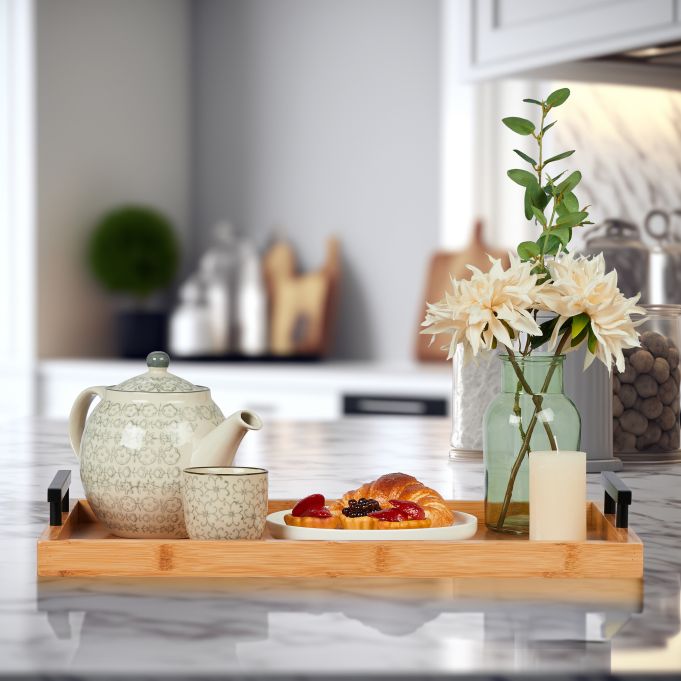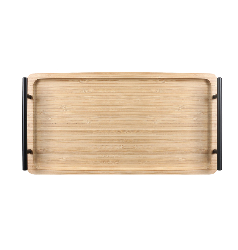 40 CM Rectangle Bamboo Tray with Metal Black Handles Multipurpose Serving Trays for Food Drinks Snacks and Appetizers 1 Piece Beige