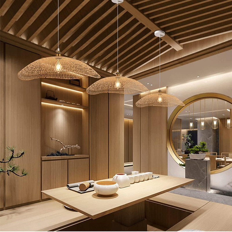 41 CM Handmade Woven Rattan Bamboo Hanging Lampshade Retro Style Chandelier Boho Pendant Light Ceiling Fixture for Bedroom Living Room and Kitchen