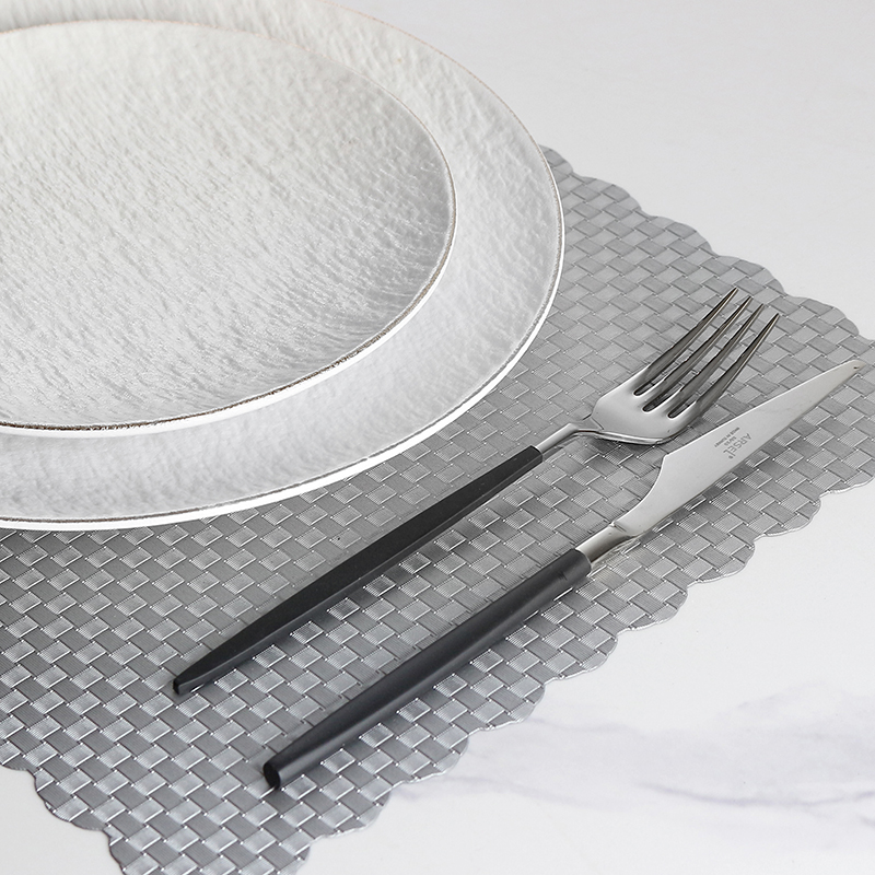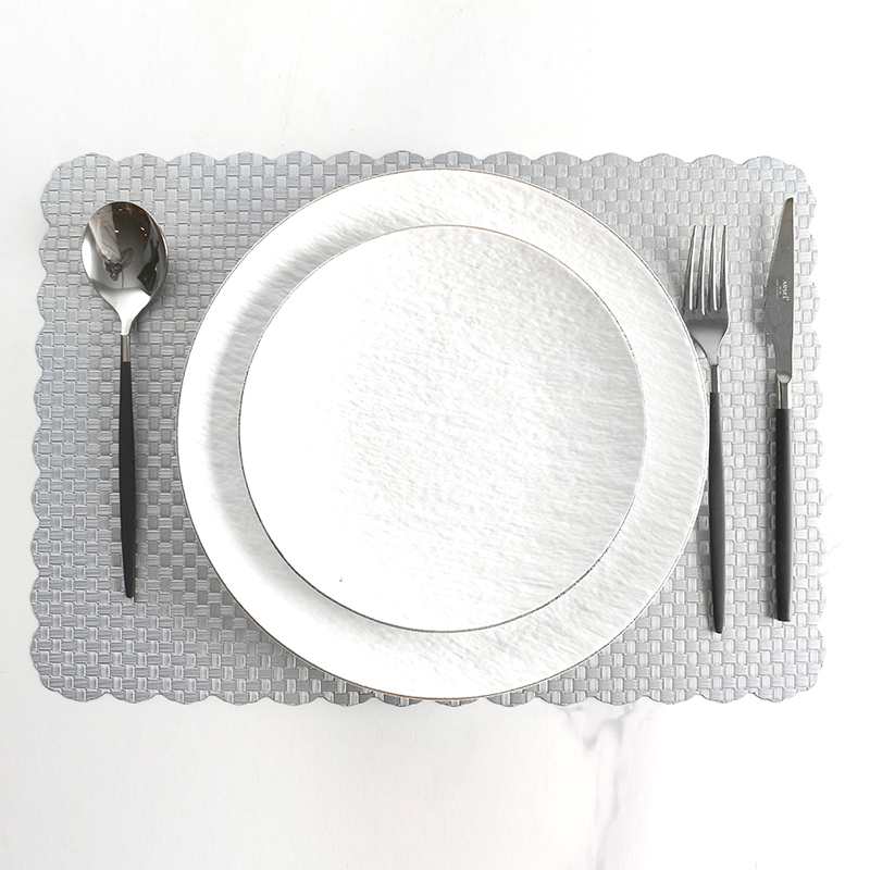 43 CM Heat Resistant Washable PVC Rectangle Placemats Non Slip Wipeable Placemat Vinyl Woven Table Mat for Dining Table Hotel and Party 1 Piece Silver