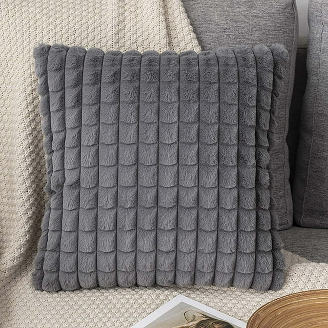 45 CM X 45 CM Throw Pillow Cover with 500G Insert Included Faux Fur Squared Cushion Cover with Zipper for Living Room Bedroom Gray 1 Piece