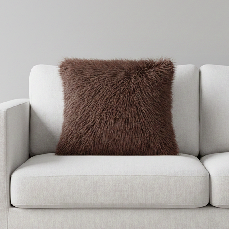 45 CM X 45 CM Throw Pillow Cover with 500G Insert Included Faux Fur Square Cushion Cover with Zipper Closure for Living Room Bedroom Brown 1 Piece