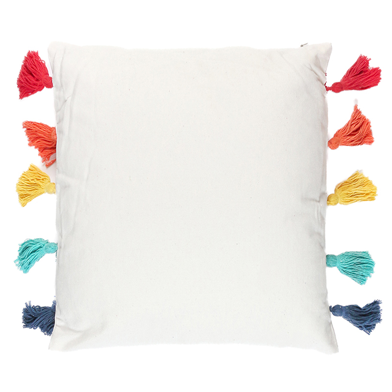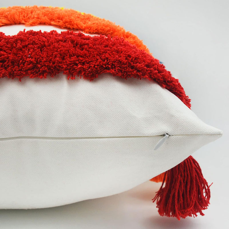 - Distinctive Design: Features a textured front with white tufted patterns and tassel corners, complemented by a solid backside for versatile display.