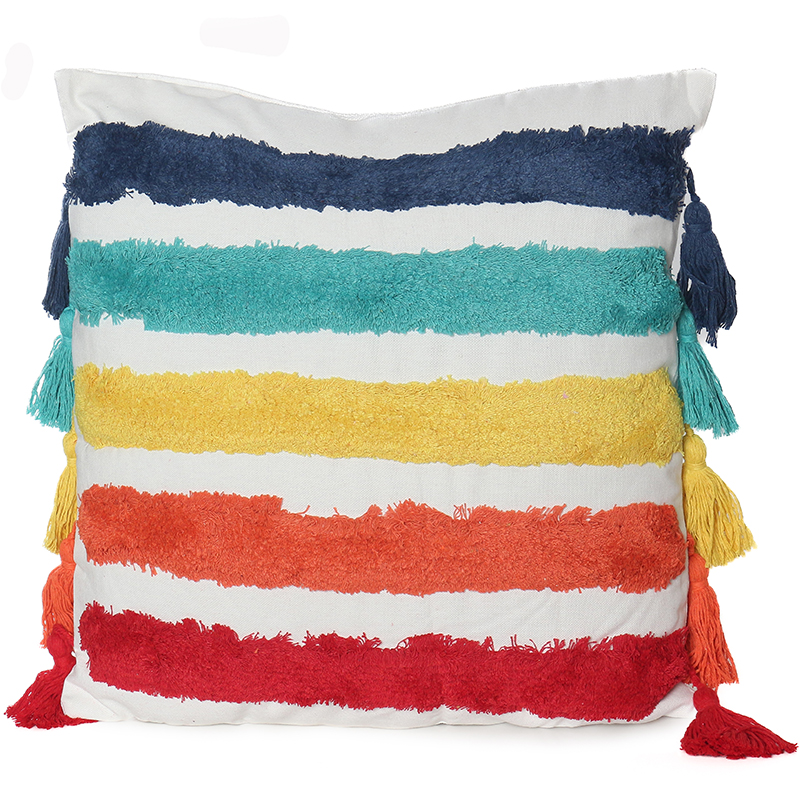 45 CM X 45 CM Throw Pillow Cover with 500G Insert Included with Tassels Tufted Embroidered Square Cushion Cover with Zipper for Living Room Bedroom Beige 1 Piece