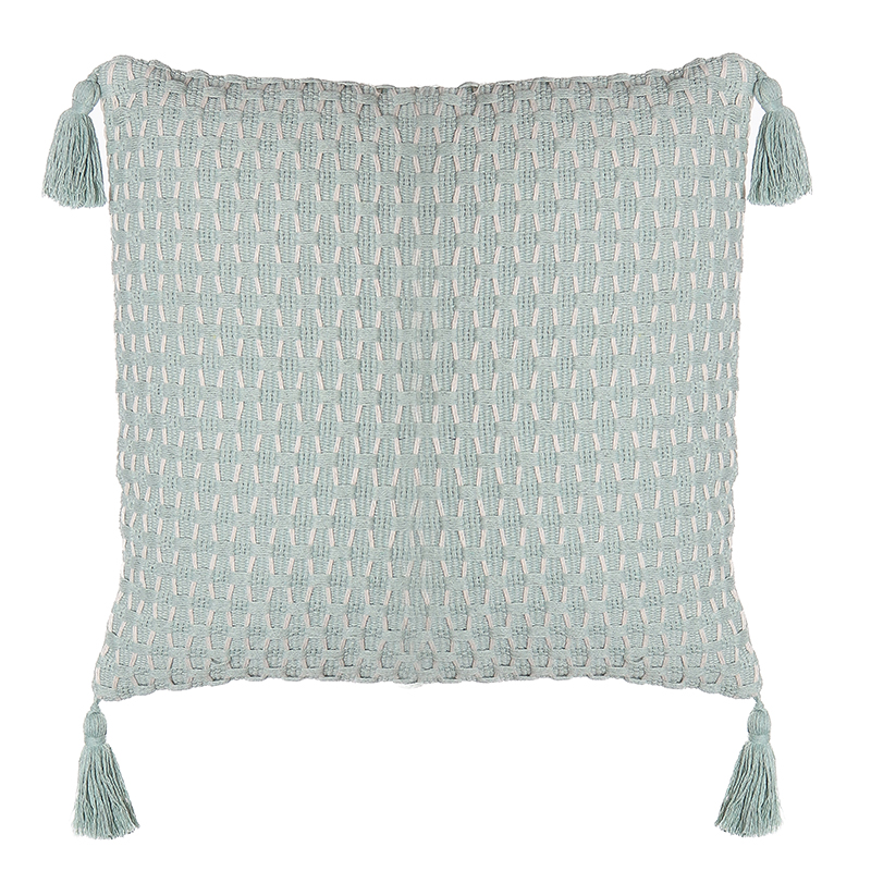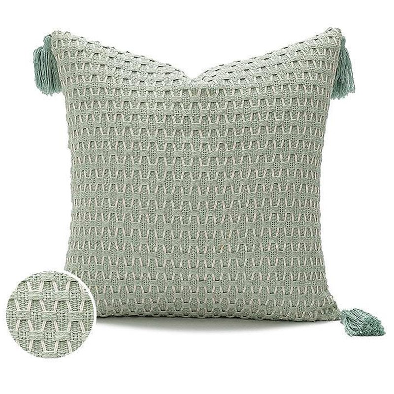 45 CM X 45 CM Throw Pillow Cover with 500G Insert Included with Tassels Woven Design Squared Cushion Cover with Zipper for Living Room Bedroom Green 1 Piece