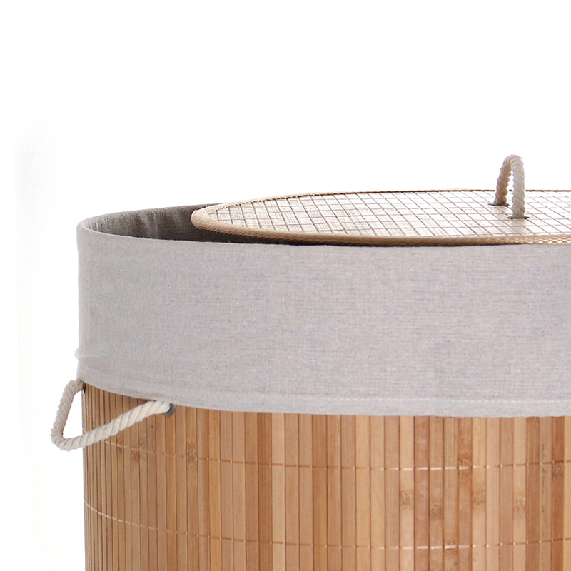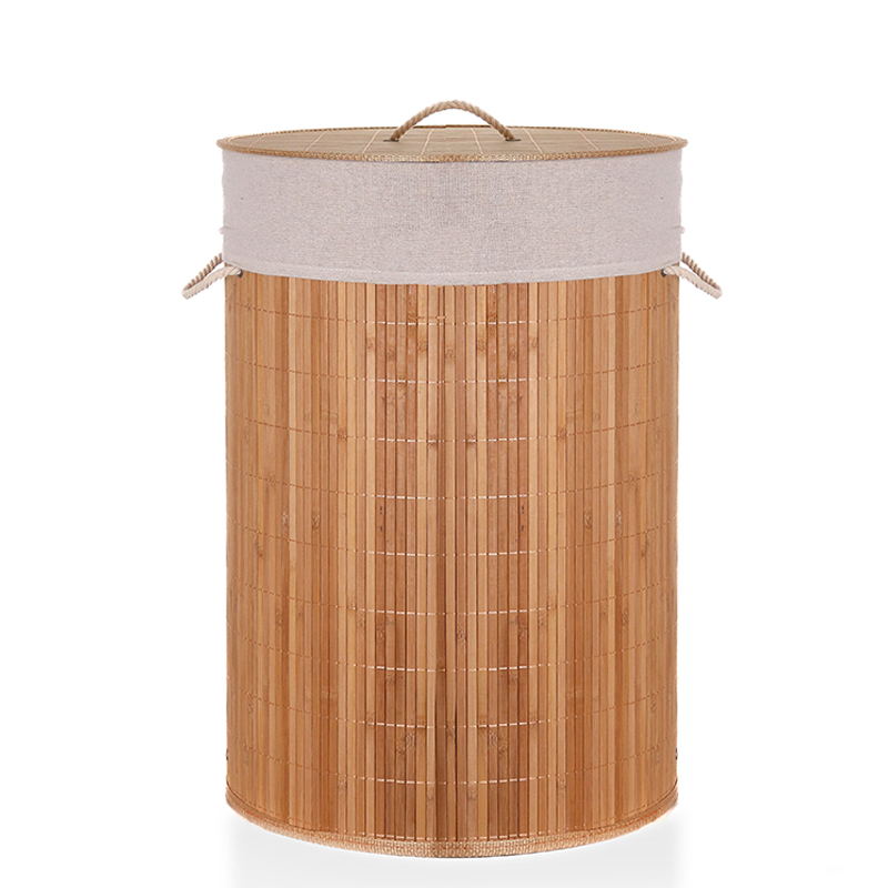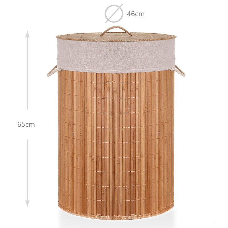 46 CM Wooden Bamboo Foldable Laundry Basket with Rope Handles Collapsible Laundry Hamper with Lid Built in Lining Clothes Storage Baskets Beige