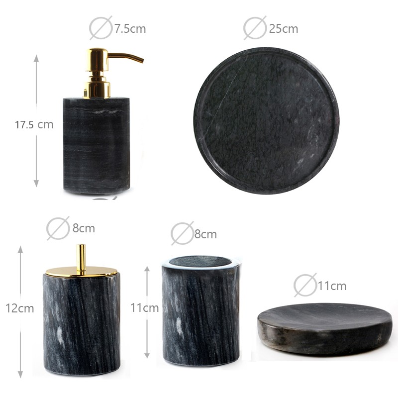 - Package Includes- 1x Soap Dispenser, 1x Soap Dish, 1x Tumbler, 1x Cotton Swab Box, 1x Tray