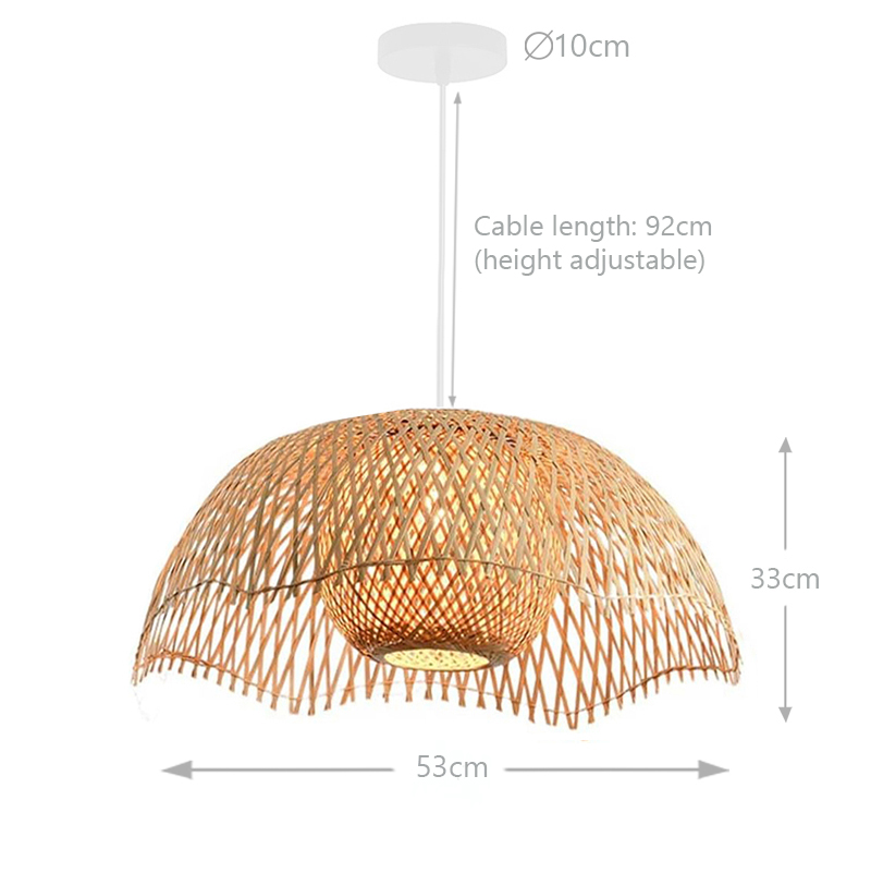 53 CM Handmade Woven Rattan Bamboo Hanging Lampshade Hollow Retro Style Chandelier Boho Pendant Light Ceiling Fixture for Bedroom and Living Room