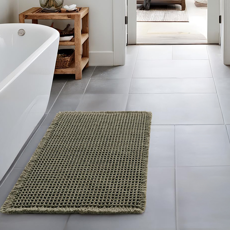60 CM X 45 CM Cotton Waffle Dry Bathroom Rug Non Slip Kitchen Mat with Tassels Super Absorbent Ultra Soft Boho Decor Floor Mats Machine Washable