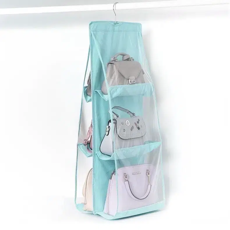 Be the first to review “6 Pocket Foldable Bag Organizer with Hanger Large Clear Handbag Storage Organizer for Wardrobe and Closet” Cancel reply