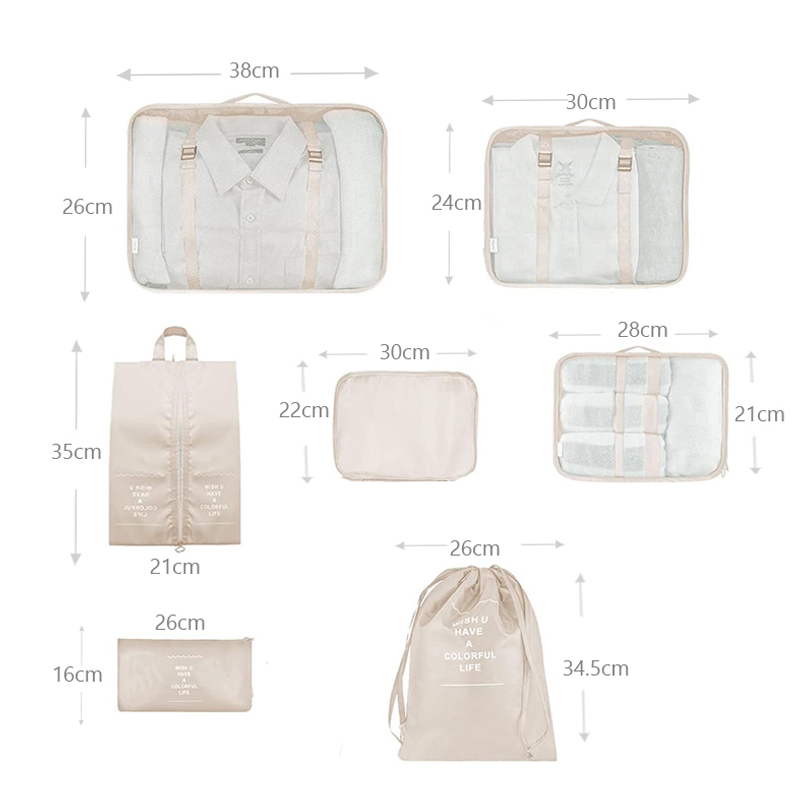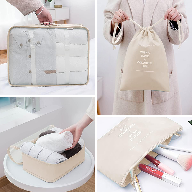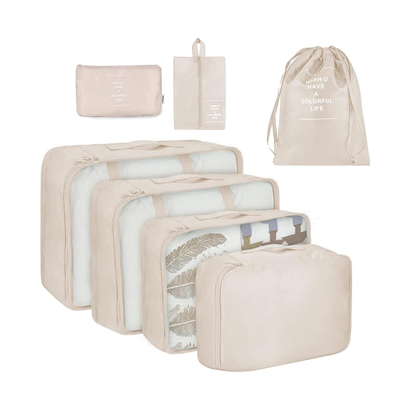 7 Pieces Packing Cubes for Suitcase Lightweight Travel Luggage Organizer Bag Set Waterproof Foldable Storage Bags for Travel Accessories Beige