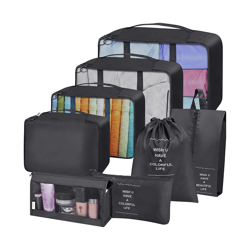 9 Pieces Packing Cubes for Suitcase Lightweight Travel Luggage Organizer Bag Set Waterproof Foldable Storage Bags for Travel Accessories Black