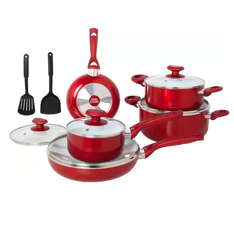 Introducing the Betty Crocker 12-Piece Ceramic Cookware Set, a must-have addition to your kitchen arsenal! This comprehensive set includes two casseroles with lids in sizes 20cm and 24cm, ensuring you have the perfect cookware for every recipe. It also features a saucepan with a lid (16cm) and two fry pans with lids (20cm and 26cm), offering versatility for various cooking needs. Plus, you’ll receive two nylon turners, adding convenience to your cooking experience. Crafted with durable ceramic material and boasting a thickness of 2.5mm, this cookware set guarantees superior performance and longevity. Upgrade your kitchen with the Betty Crocker 12-Piece Ceramic Cookware Set today!