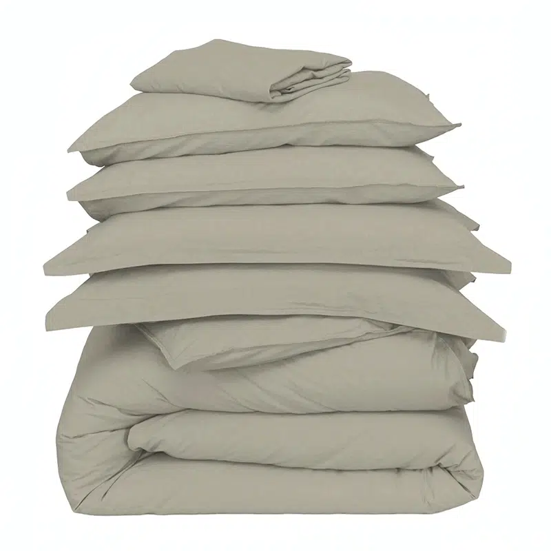 Cannon 100% Cotton Double 7 Pieces Duvet Cover Set Stone Washed Breathable with Duvet Cover Fitted Sheet Pillow Cases Pillow Shams and Fabric Bag Green