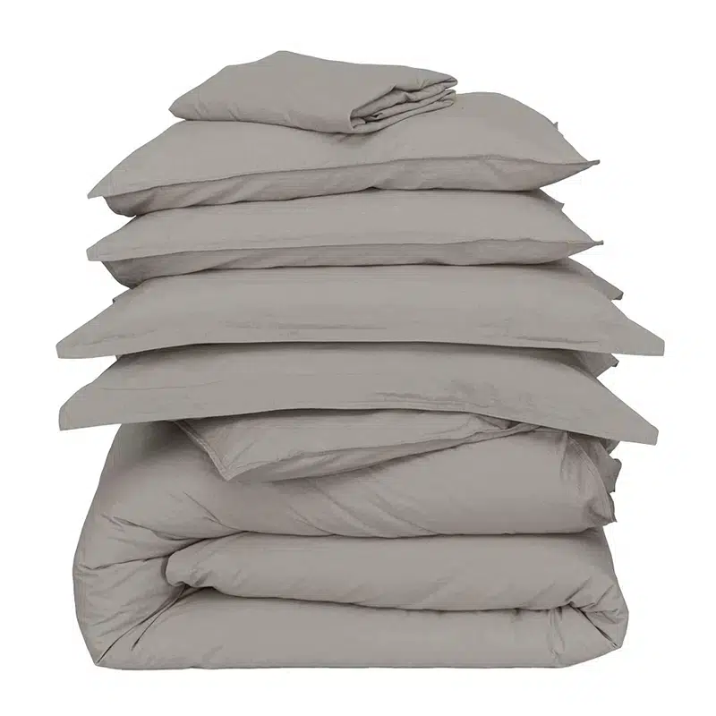 Cannon 100% Cotton King 7 Pieces Duvet Cover Set Stone Washed Breathable with Duvet Cover Fitted Sheet Pillow Cases Pillow Shams and Fabric Bag Gray