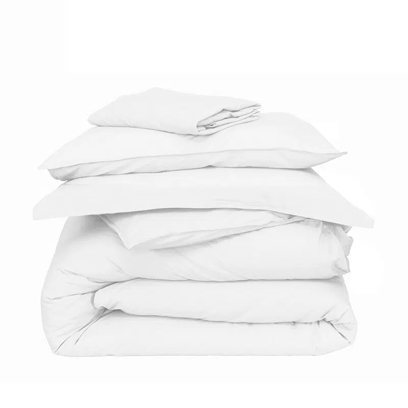 Cannon 100% Cotton Twin 5 Pieces Duvet Cover Set Stone Washed Breathable with Duvet Cover Fitted Sheet Pillow Cases Pillow Shams and Fabric Bag White