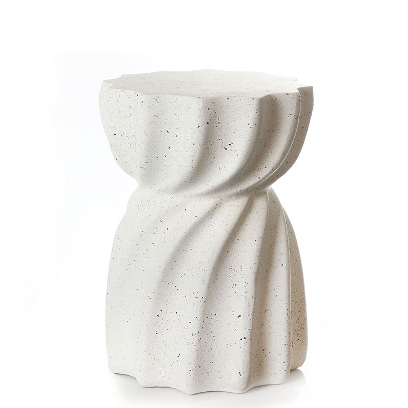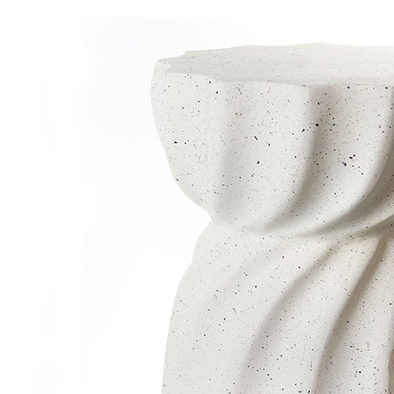 35 CM Lightweight Concrete Outdoor Side Table Round Unique Shape Coffee Table End Tables Garden Stool for Home Decor Living Room and Bedroom White