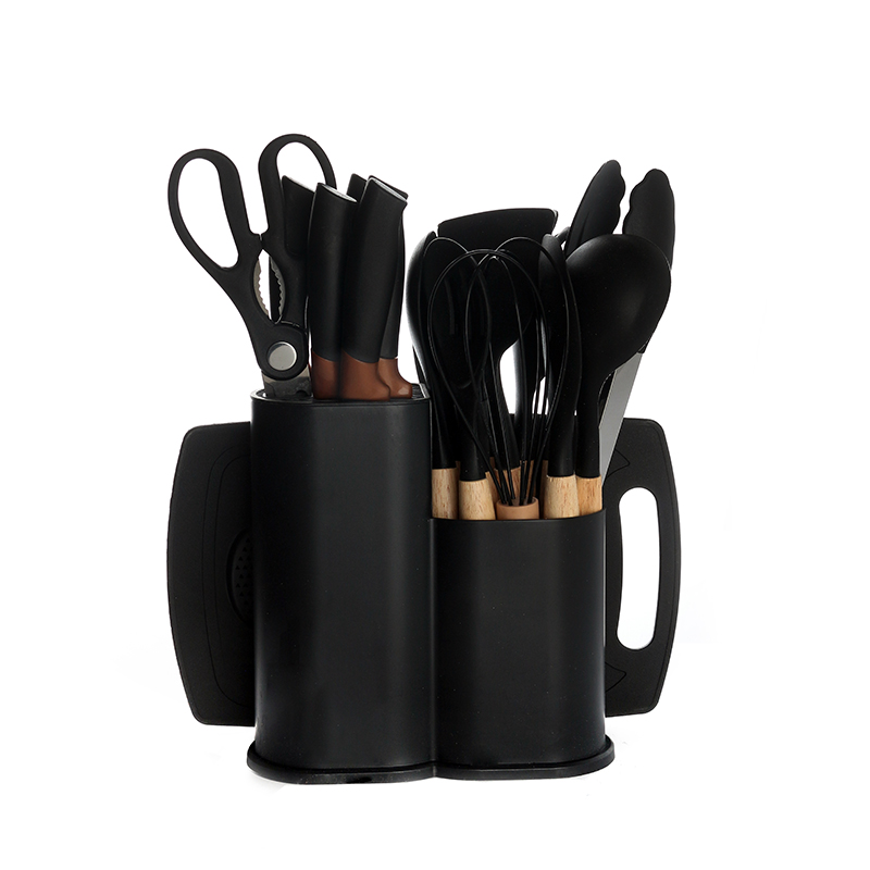- Package Includes- 9x Cooking Utensils Set, 5x Knife Set, 1x Tong, 1x Scissor, 1x Beater, 1x Holder, 1x Cutting Board