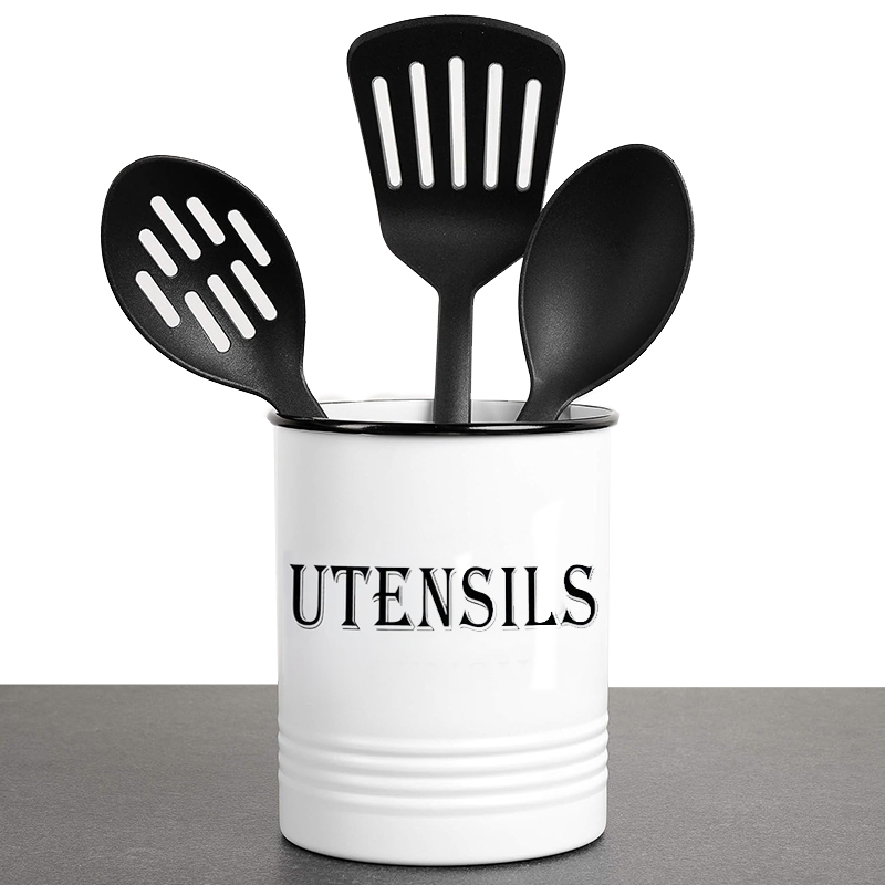 - Utensil Container- 100% made of durable steel, non-toxic, food safe powder coated utensil holder will definitely bring style to any kitchen and helps all cooking tools to be organized.