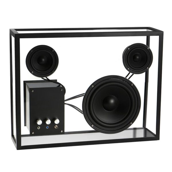 43 CM Tempered Toughened Glass Transparent Wireless Bluetooth with AUX Portable Speaker Studio Level Sound Volume and Base Adjustment Controller – Black