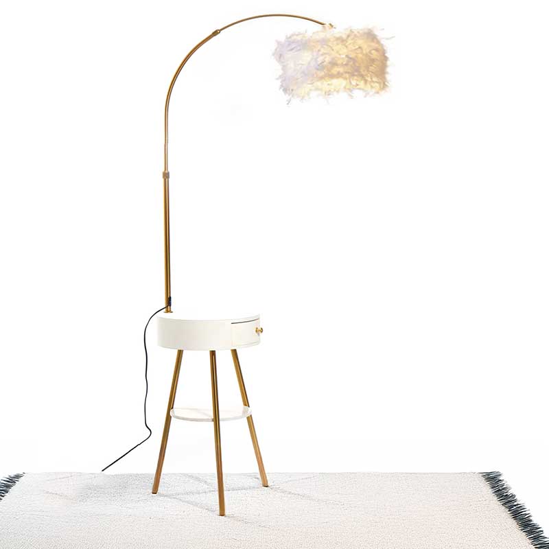 Get modern and inspire your home decoration with the floor lamp, and it’s the perfect space saver too! The floor lamp combines style and aesthetic with it’s practical drawer for your essentials and is a feathery stunner in your decoration.