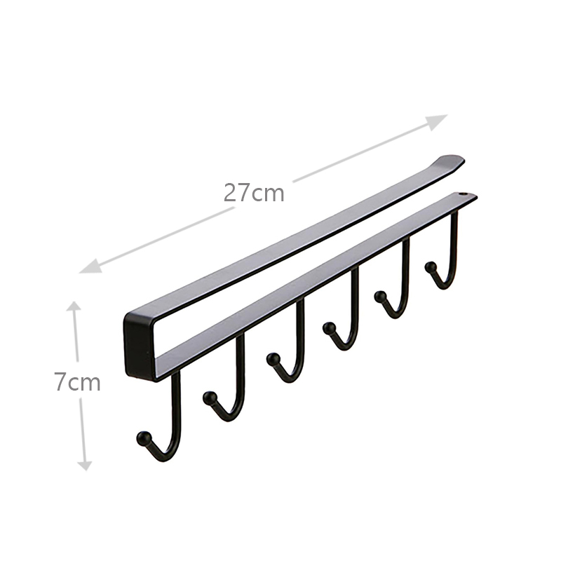 Mug Rack Under Cabinet Cup Holder Under Shelf Coffee Cups Holder Hanger with 6 Hooks Organizer Holders for Kitchen 1 Piece Black