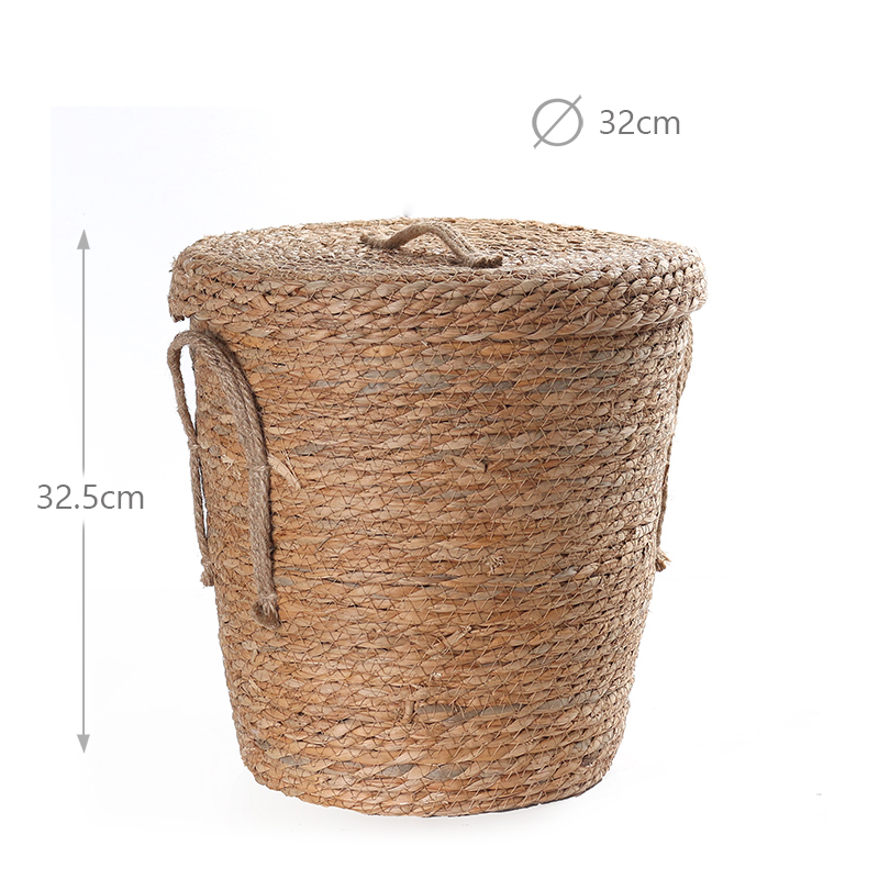 32 CM Multipurpose Handmade Woven Straw Storage Basket with Handles and Lid Organizer Baskets for Living Room Bedroom Nursery and Laundry 1 Piece