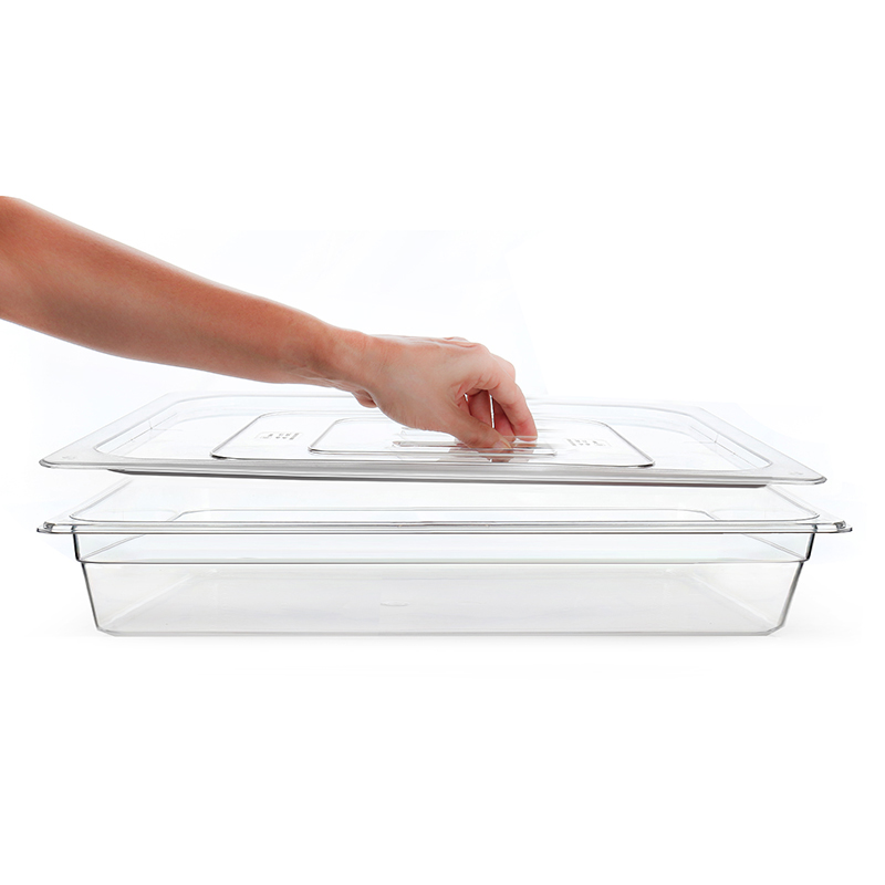 - Keep Track of Ingredients- The clear finish of food prep pans display fare for quick identification while the graduated measurements in quarts and liters allow you to manage ingredients.