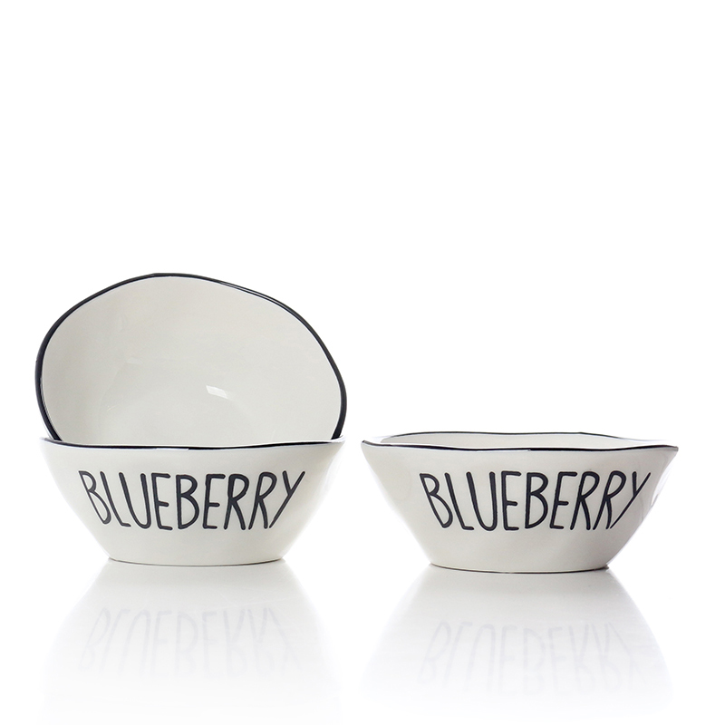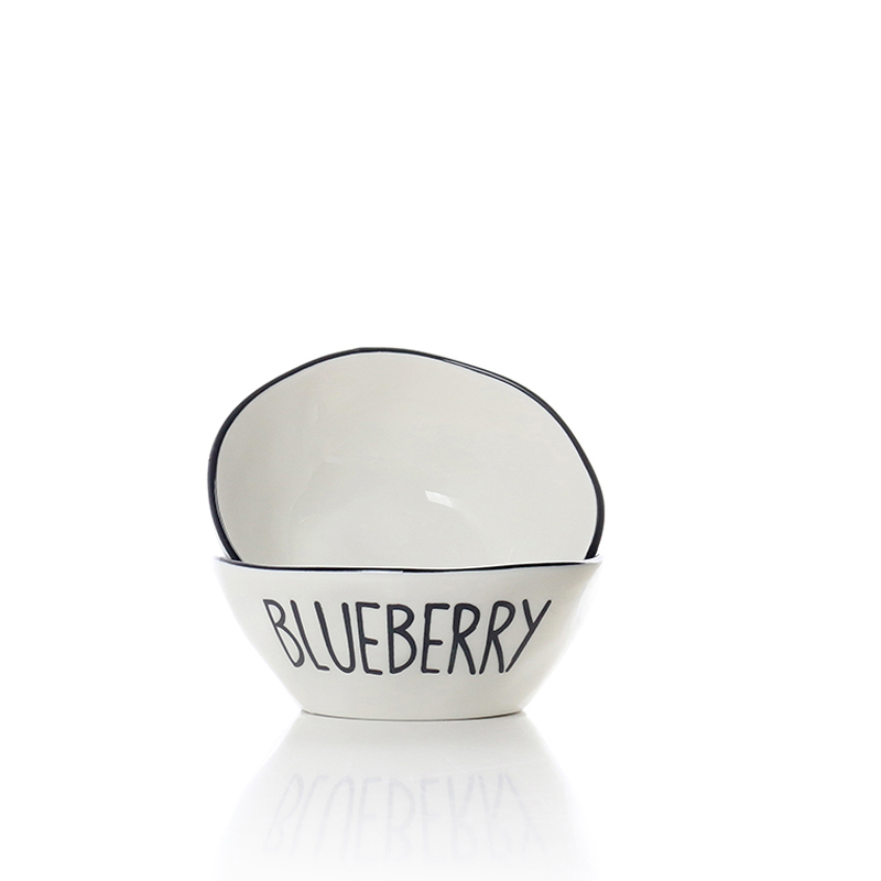 12 CM Porcelain Stackable Bowl with Text Design Blueberry Glazed Black Rim Bowls Tableware Kitchen Serving Bowls Microwave and Dishwasher Safe 1 Piece