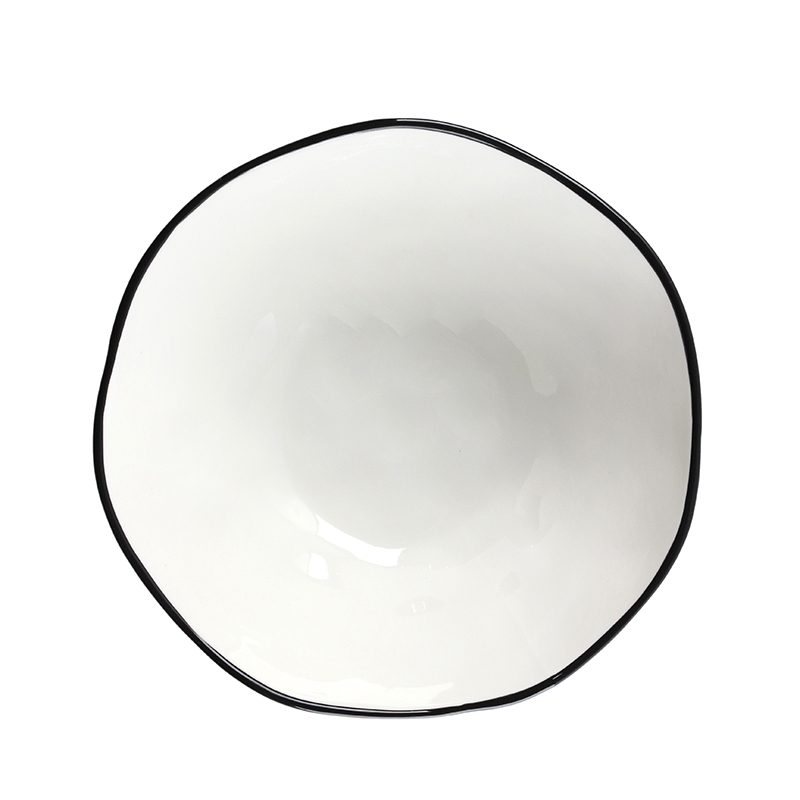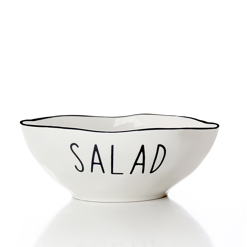 21 CM Porcelain Stackable Bowl with Text Design Salad Glazed Black Rim Bowls Tableware Kitchen Serving Bowls Microwave and Dishwasher Safe 1 Piece